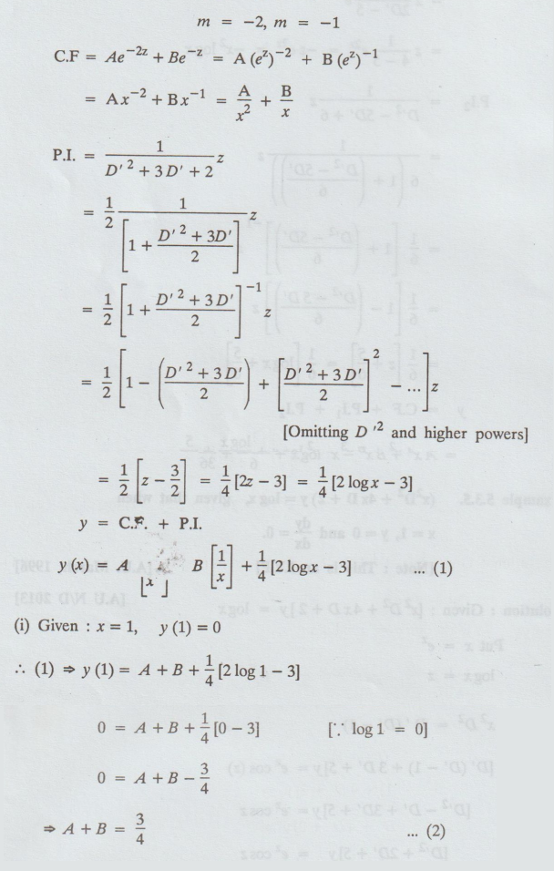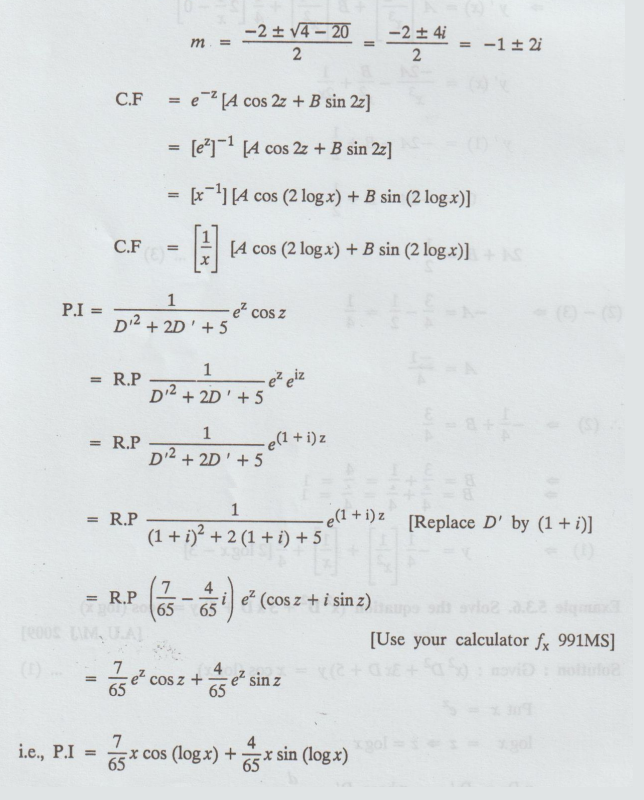 Probability and complex function: Unit V: Ordinary Differential Equations : Tag: : Solved Example Problems | Ordinary Differential Equations - (a) Problems based on cauchy-euler