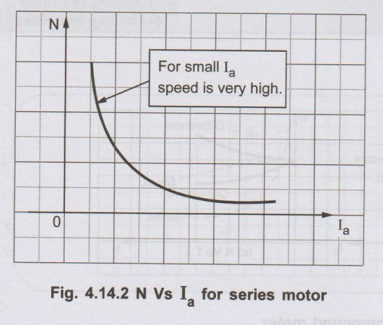 • It is seen earlier that motor armature current is decided by the load. On light load or no load, the armature current drawn by the motor is very small. In case of a d.c. series motor, ϕ ∝Ia and on no load as I is small hence flux produced is also very small.