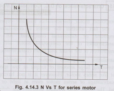 speed-torque characteristics of a series motor is shown in the Fig. 4.14.3.