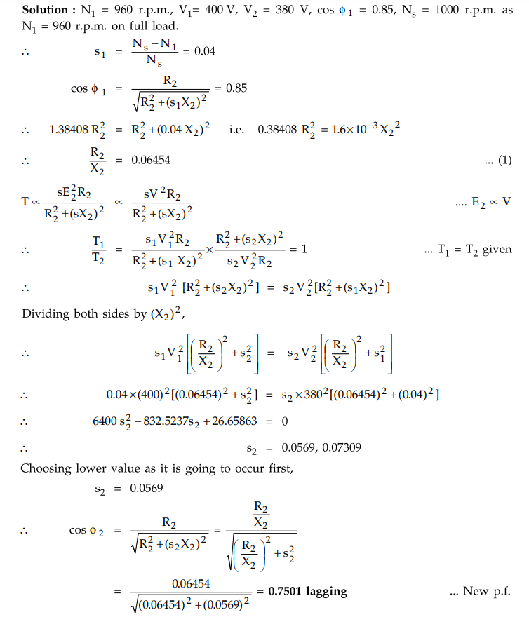 5.15.1 A 3-phase, 4 pole, 50 Hz squirrel cage induction