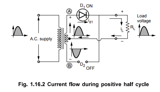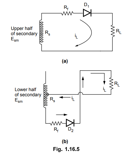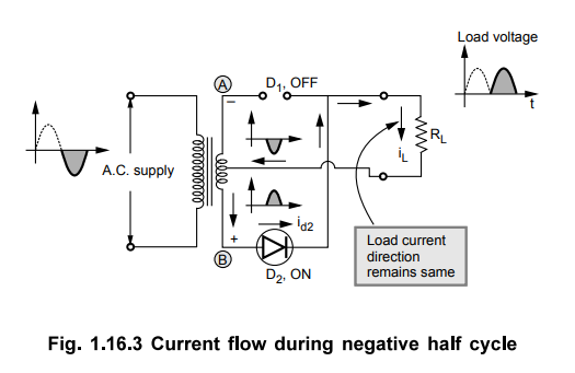 flowing in corresponding half cycles. It is also noted that the two diodes do