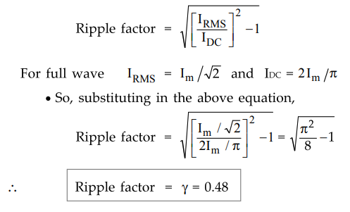 As derived earlier in case of half wave rectifier the ripple factor is given by