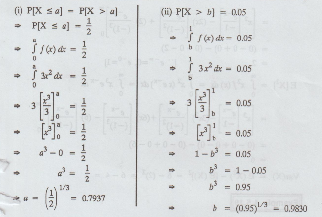 p.d.f f(x) = 3x2, 0 ≤ x ≤1. Find a and b such (i) P[X ≤ a] = P
