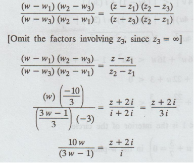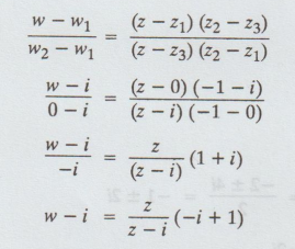 z1 = ∞, z2 = i, z3=0 & w1 = 0,