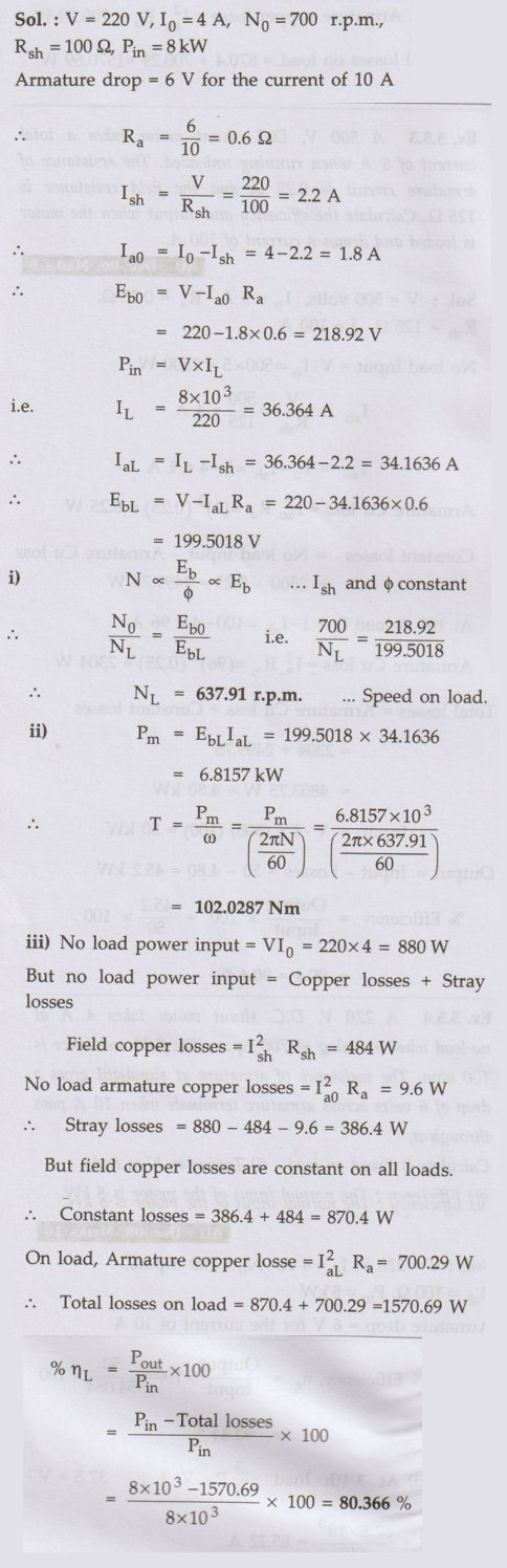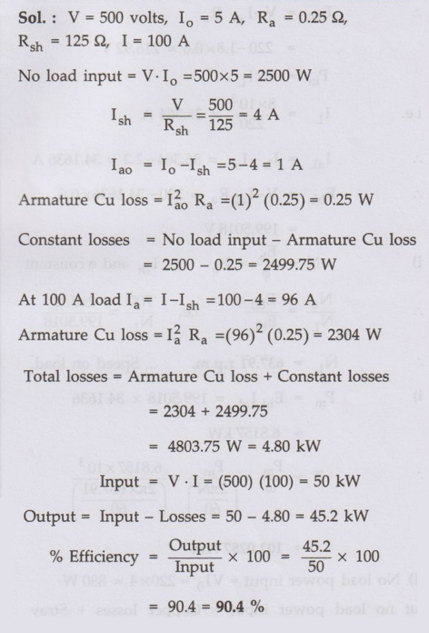 Ex. 5.5.3 A 500 V, D.C. shunt motor takes a