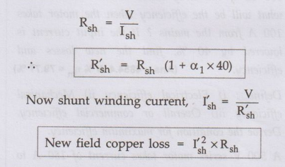 2. A 440 V d.c. shunt motor takes a no load current of 2.5 A. The resistance of the shunt field and the armature are 550 Ω and 1.2 Ω respectively. The full load line current is 32 A. Find the full load output and the efficiency of the motor.