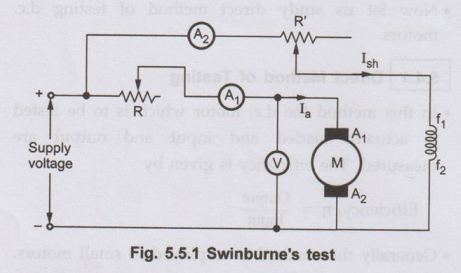 This is indirect method of testing d.c. motors in which flux remains practically constant i.e. specially in case of shunt and compound motors. Without actually loading the motor the losses and hence efficiency at different loads can be found out.