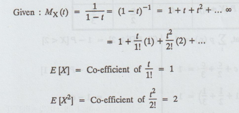 Let Mx (t) = 1 / 1 − t | t | < 1, the moment generating function of R.V.X. Find