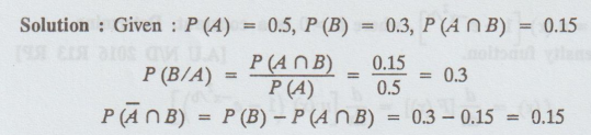 Let A and B be two events such that P (A) = 0.5, P (B) = 0.3 and P(A∩B) = 0.15