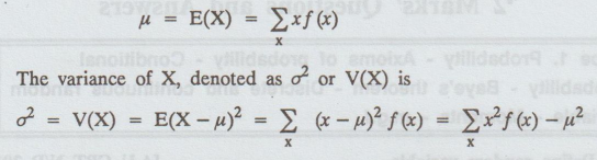 Probability and complex function: Unit I: Probability and random variables : '2 Marks' Questions and Answers