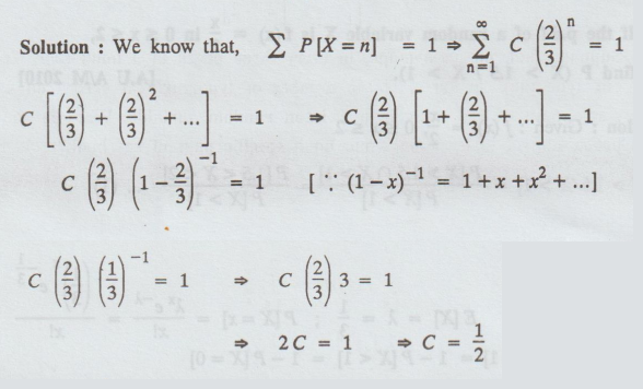 Find C, if P [X = n] = C (2/3)n ; n = 1, 2, ...