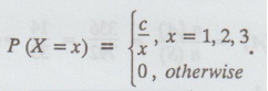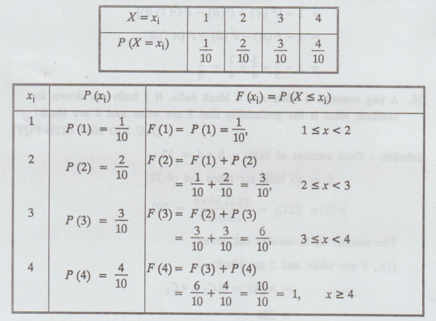 A random variable X has probability mass function P (X = x) = x/10, x = 1, 2,