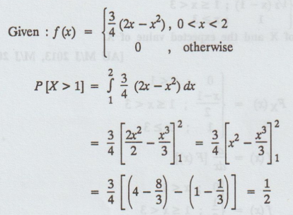 If the p.d.f of a random variable X is f (x) = x/2 in 0 ≤ x ≤ 2, find P (X >