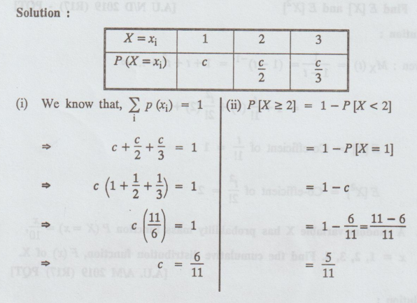 (i) The value of 'c', (ii) P (X ≥ 2)