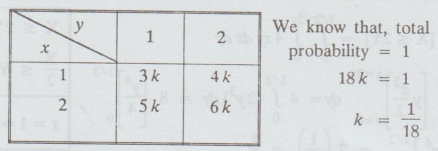 is given by p (x, y) = k (2x + y), x = 1, 2 and y = 1, 2, where k is a