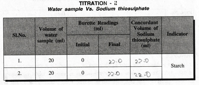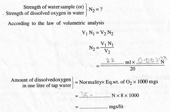 colour disappears. From the titre value the strength of dissolved oxygen is