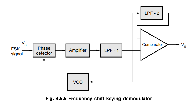 PLL can be used as a FSK demodulator, as shown in the Fig. 4.5.5. It is similar