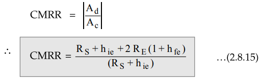 emitter resistance ideally infinite which reduces the common mode gain Ac