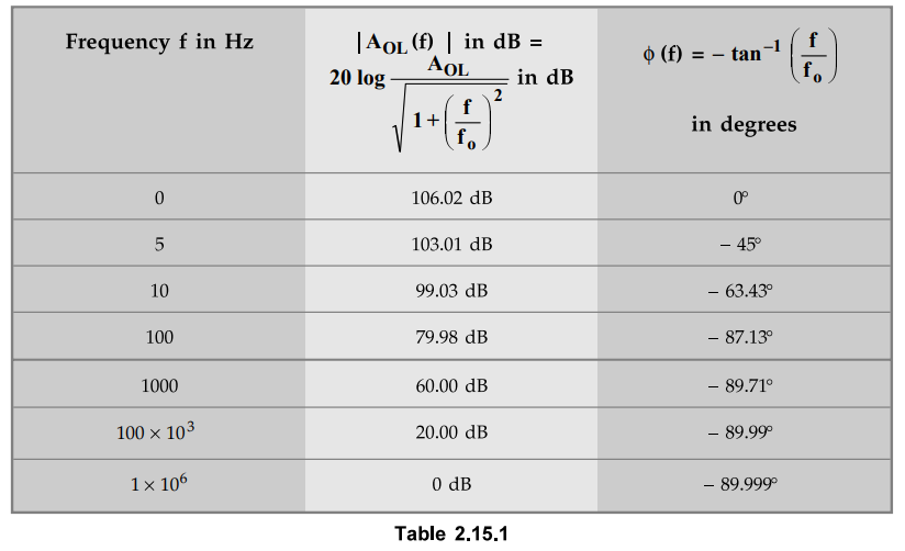 f = 0 Hz, the magnitude is AOL , while ϕ (f) = 0°