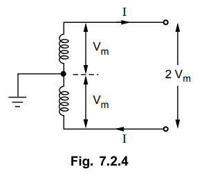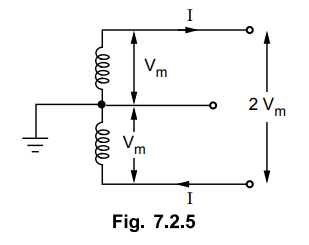 respect to earth. The voltage between the two wires is 2 Vm and its r.m.s.