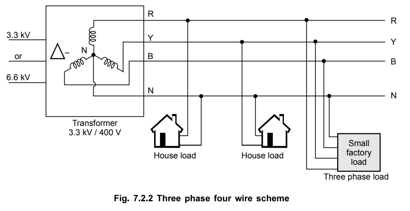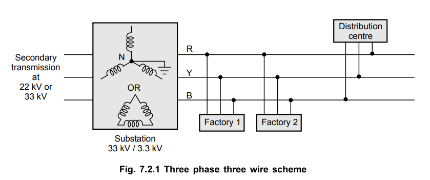The Fig. 7.2.1 shows the scheme of three phase three wire system for the
