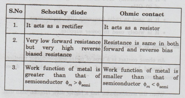 What are the differences between schottky diode and ohmic contacts?