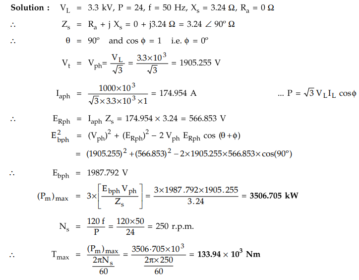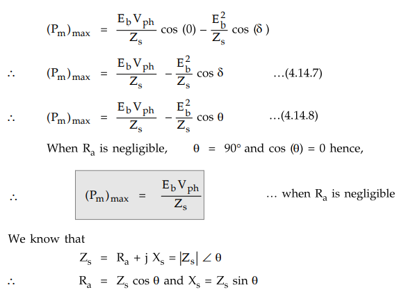 Thus when Ra is negligible, θ = 90o for maximum power developed. The corresponding torque is called pull out torque.
