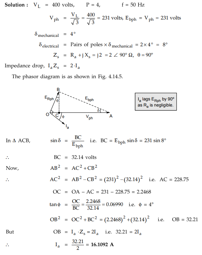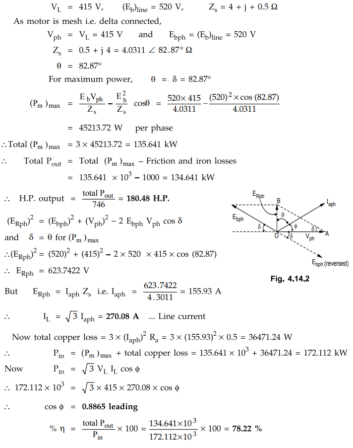 4.14.4 A 4 pole, 400 V, 50 Hz, 3 phase star connected