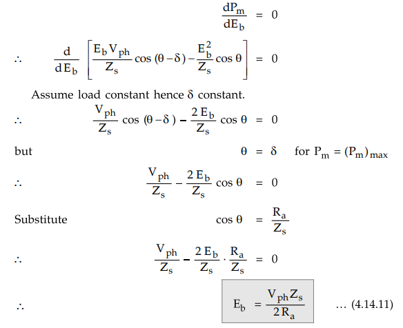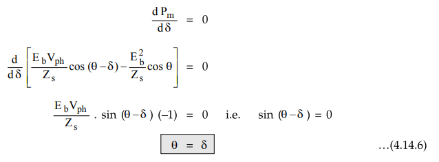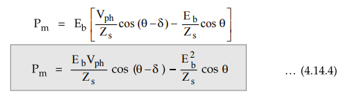 cos ψ = Vph / ZS cos (θ - δ ) - Eb / ZS cos θ … (4.14.3)