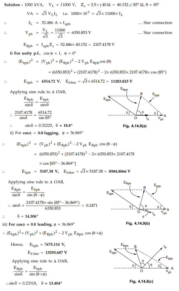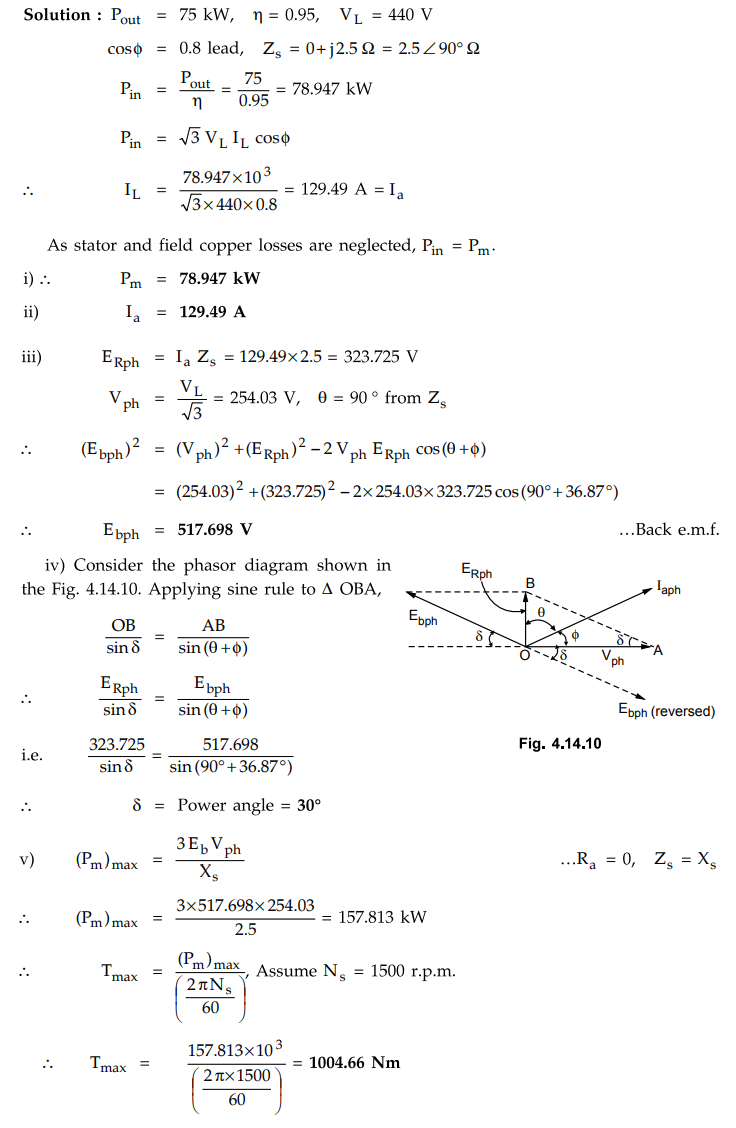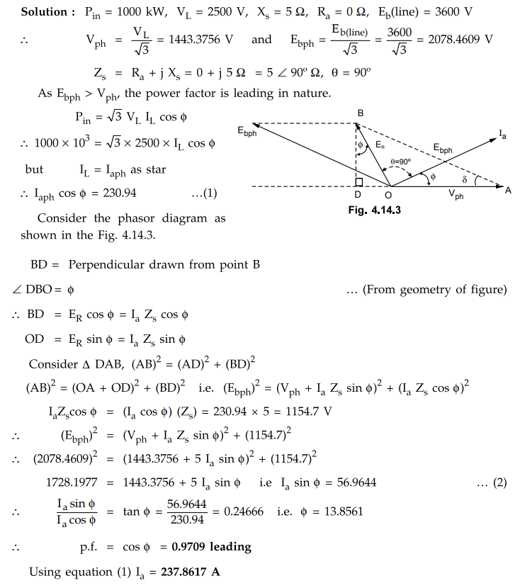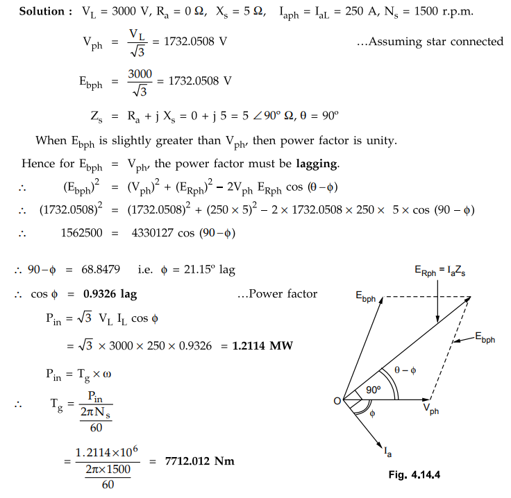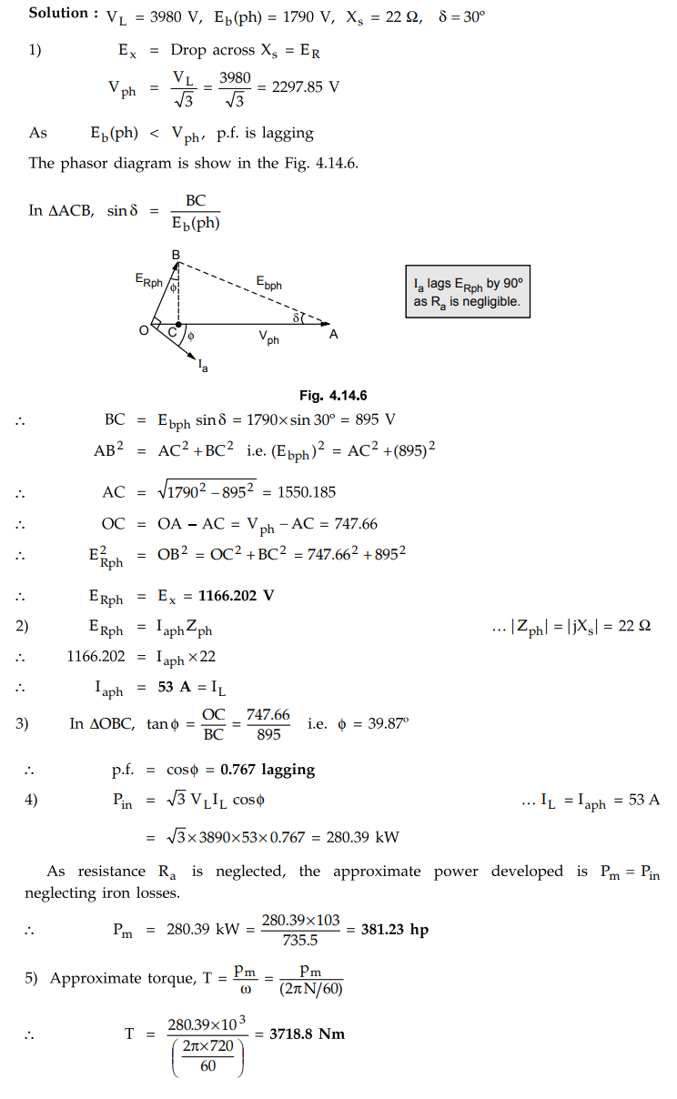 4.14.3 A 3000 V, 3 phase synchronous motor running at