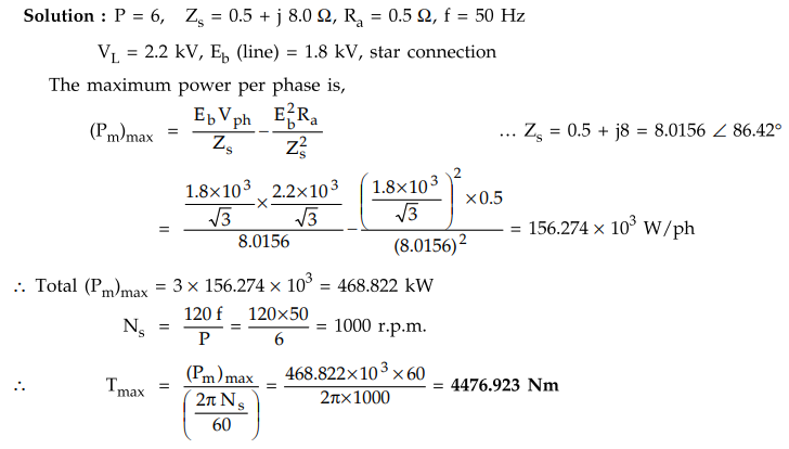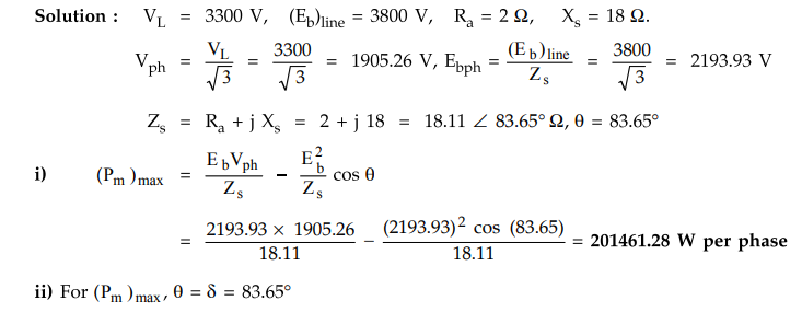 maximum power for synchronous motor. AU : May-13, Marks 6