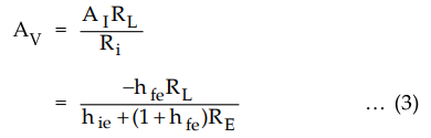 • The simple and effective way to obtain voltage gain stabilization is to add an emitter resistance RE to a CE stage as shown in Fig. 6.8.1.