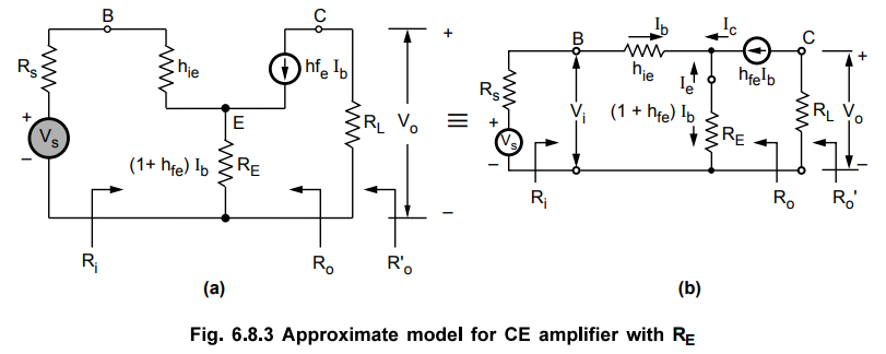 Fig. 6.8.2 shows an ac equivalent circuit for common emitter circuit with