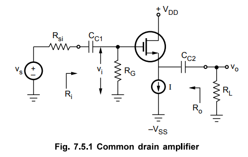 Fig. 7.5.1 shows the common-drain amplifier circuit. It is also known as