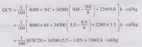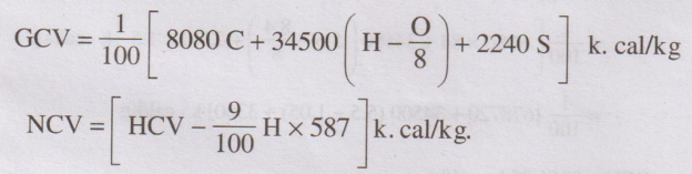 8. Give the Dulong's formula for the calculation of GCV and NCV.