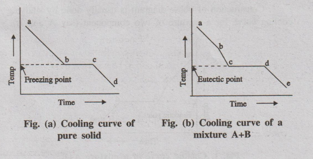 d' cooling of solid mass begins. The temperature of horizontal line 'cd' gives
