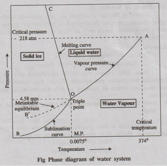 Temperature and pressure at the point “O' are 0.0075°C and 4.58 mm