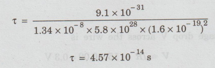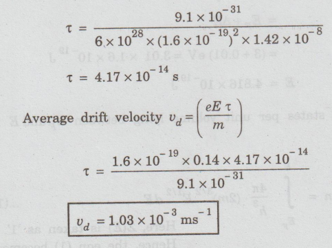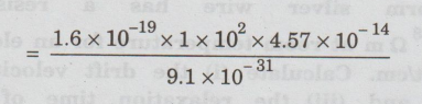 drift velocity and (ii) mean collision time, assuming that there are 6 x 1028