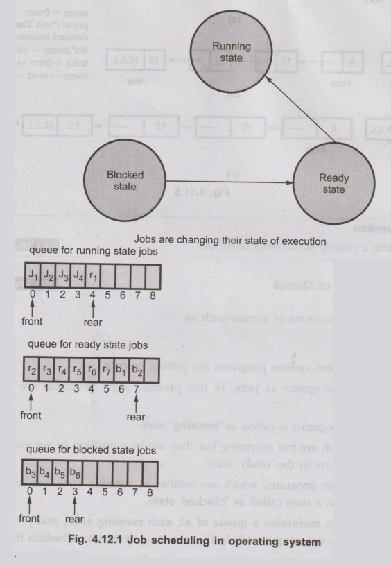 The operating system maintains a queue of all such running state, ready state, blocked state programs. Thus use of queues help the operating system to schedule the jobs.