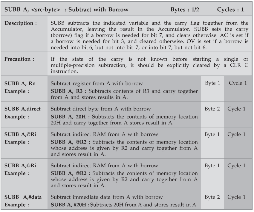 Microprocessors and Microcontrollers: Unit III: (b) 8051 Instruction Set and Programming : Tag: : 8051 Instruction Set and Programming - Arithmetic Instructions