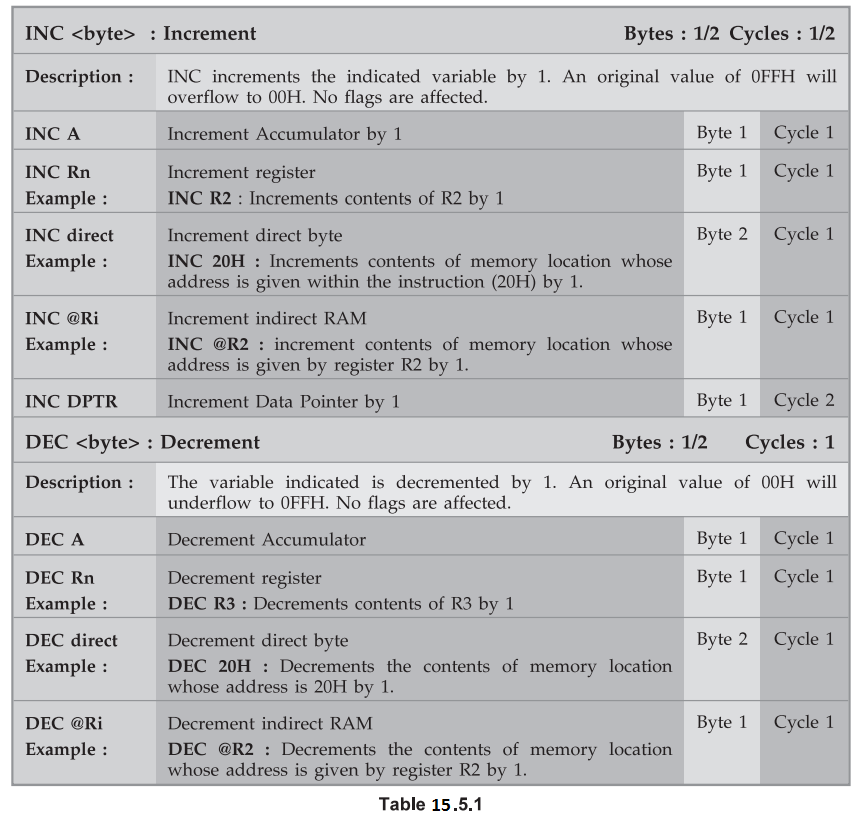 number. These instructions not affect C, AC and OV flags. Table 15.5.1 lists
