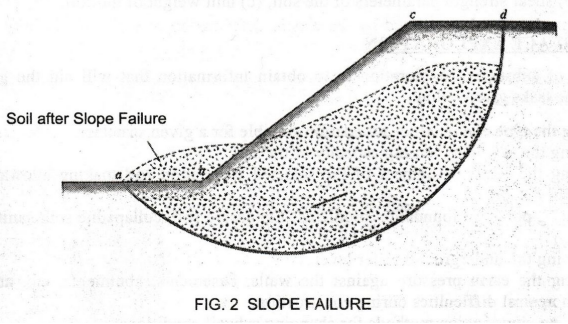 slope failure can occur; that is the soil mass in zone abcdea can slide