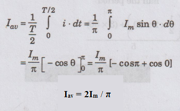 a symmetrical wave, the average value is taken over л radians (T / 2 sec)