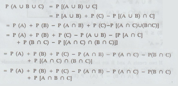 (A + B + C) = P (A) + P (B) + P(C) - P (AB) - P (BC) - P (CA) + P (ABC)