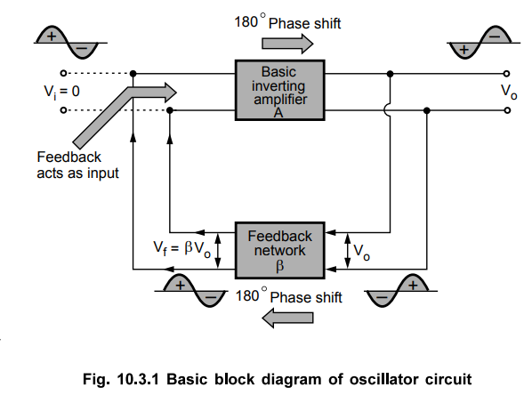 • For an oscillator, there is no input (Vs = 0) hence feedback voltage Vf must be sufficient to maintain the oscillations.
