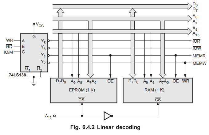 6.4.2 shows the addressing of RAM with linear decoding technique. A15