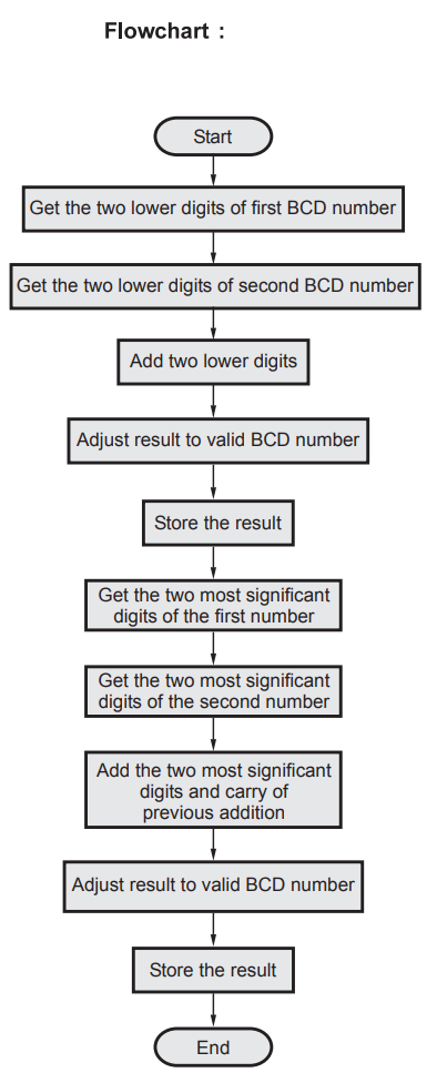 Questions : 1. Explain the procedure for addition of two BCD numbers. 2. Explain the procedure for subtraction of two BCD numbers.