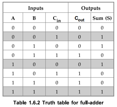 • The addition consists of four possible elementary operations, as shown in Table 1.6.1.