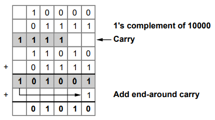 1.6.4 Perform subtraction using l's complement (11010)2 - (10000)