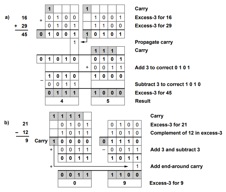 1.7.17 Represent the decimal number a) 396 and b) 4096 in Excess-3 code.